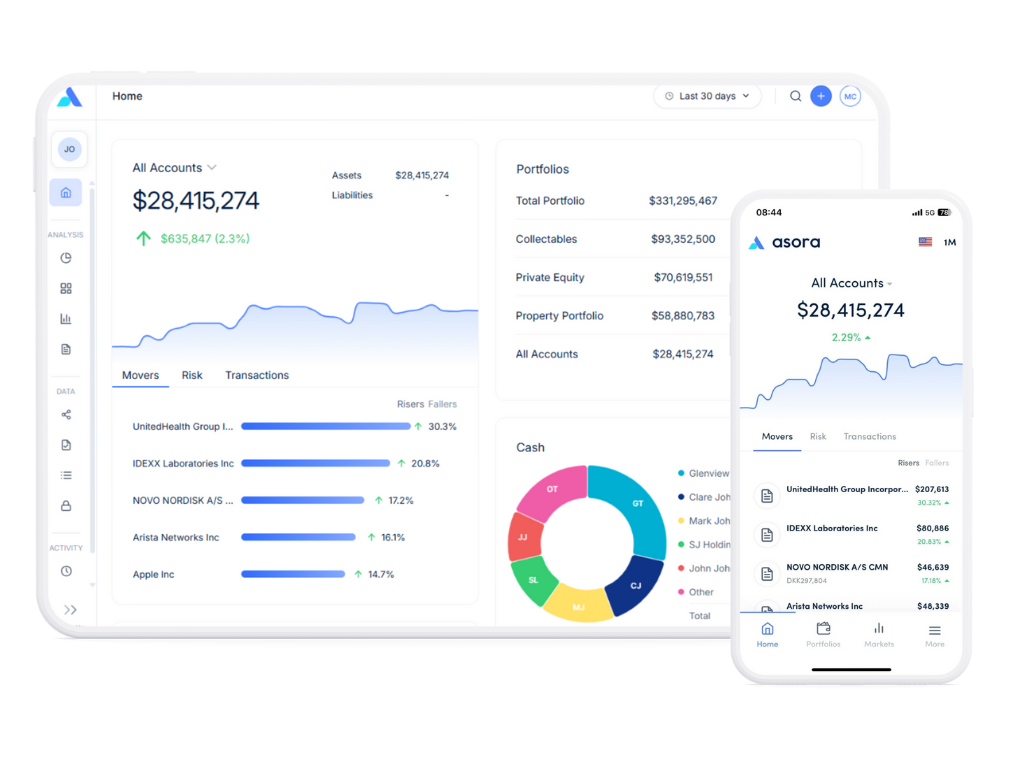 Asora becomes the single source of truth for financial data, documents, and recurring tasks. Bank and custodian feeds flow into a consistent ledger, where available, private assets are tracked alongside public holdings, and documents are linked to entries, making provenance easy to establish. Reporting is available at the entity level and for the consolidated group. This allows your advisers to focus on interpretation and strategy while your team operates a lean, repeatable model.