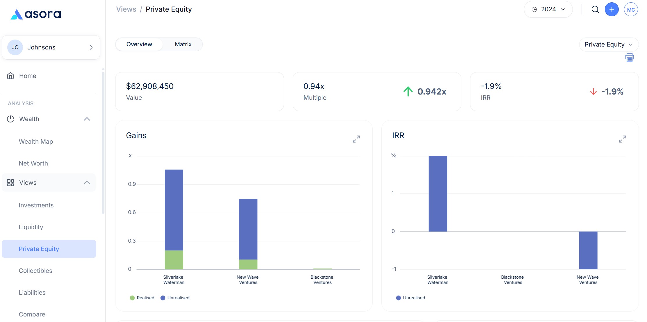 - Calculates key private asset metrics, including IRR and multiples, unrealised/realised gains/losses without manual effort.