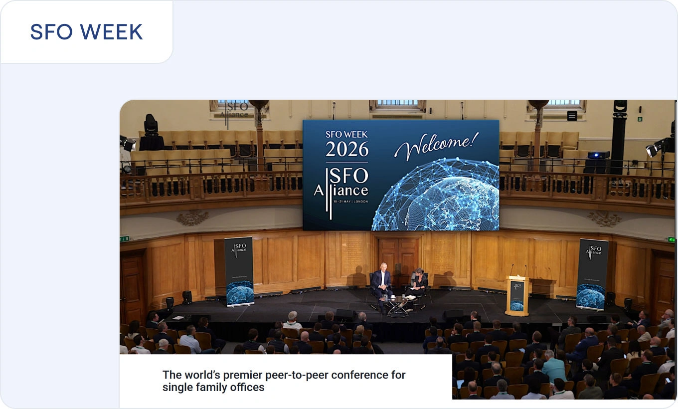 A highly curated, closed-door experience designed specifically for SFOs. SFO Week brings together a carefully pre-qualified group of executives and principals from single family offices for closed-door, peer-to-peer salon-style discussions focused on governance, operations, and investment strategy.