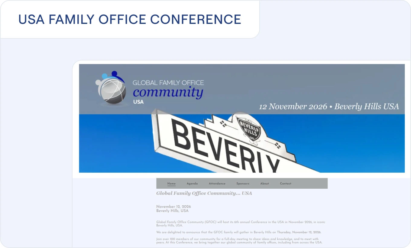 A US-focused event with strong West Coast representation. The USA Family Office Conference brings together a high concentration of US-based family offices, particularly from the West Coast, with a focus on networking and investment opportunities.