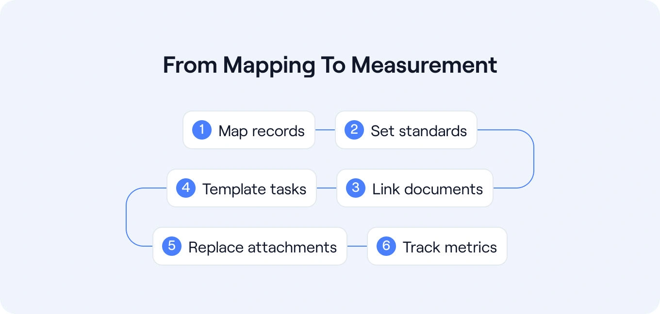 Finally, measure what matters. Most offices aim for a sub-5-minute median document retrieval time, a <2% missing-document rate per quarter, and a 95% on-time completion rate for document-linked tasks. Track retrieval time, missing-document rates, days to close by entity, and on-time completion rates for document-linked tasks. If a trend slips, fix the workflow rather than adding more folders.