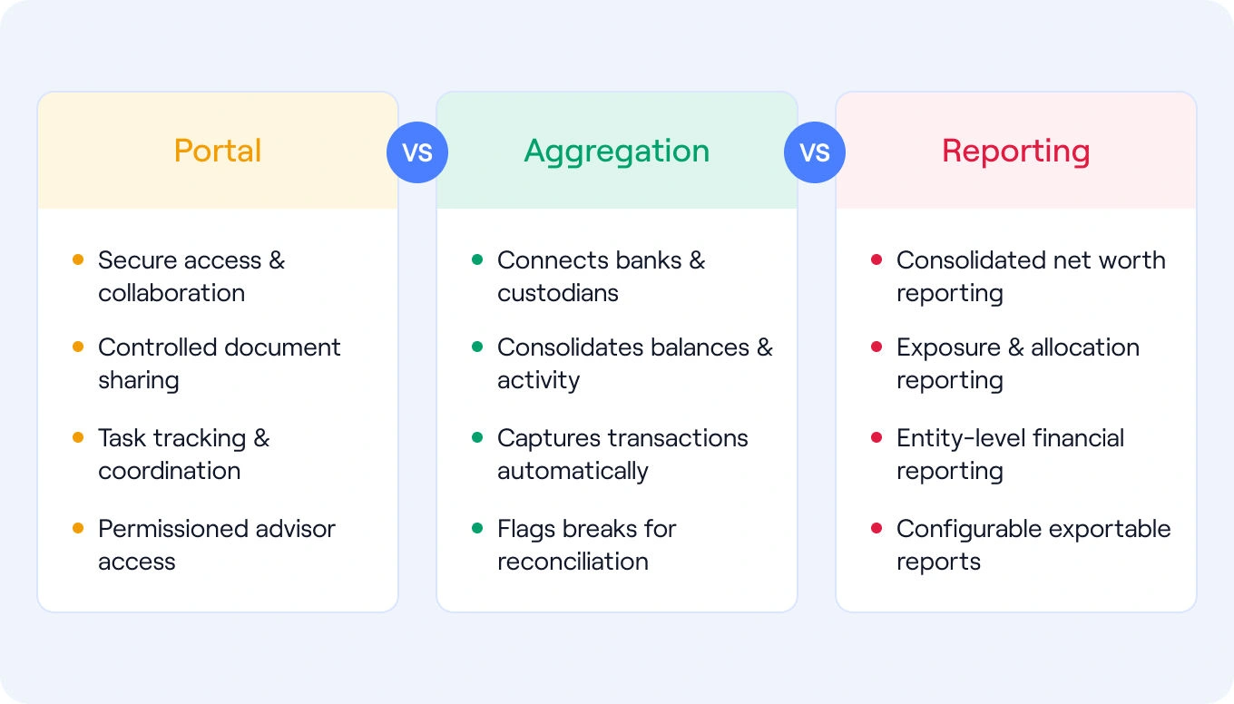 A family office portal is not simply a document repository. It is the coordination layer across entities, advisors, custodians, and reporting systems.