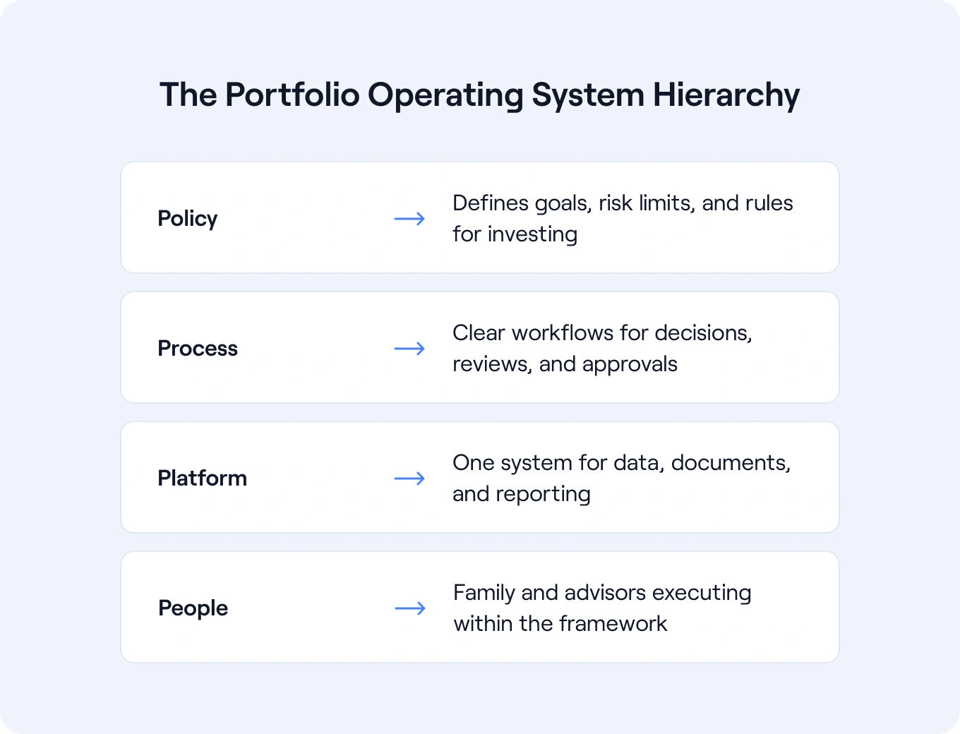 Family office portfolio management isn't about implementing the most sophisticated analytics or buying the most expensive platforms. It's about codified policy, disciplined processes, and a single source of truth that enables trustworthy, repeatable oversight.