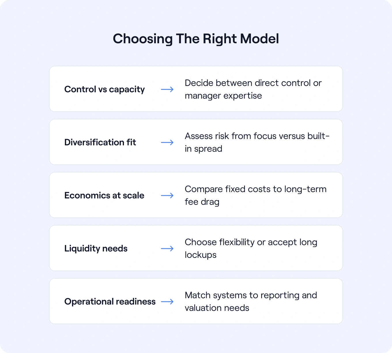 Comparing options isn't really about which model is universally better; it's about understanding the operating requirements, risk profile, and resource demands of each approach so you can make informed investment decisions aligned with your family's capabilities and objectives.