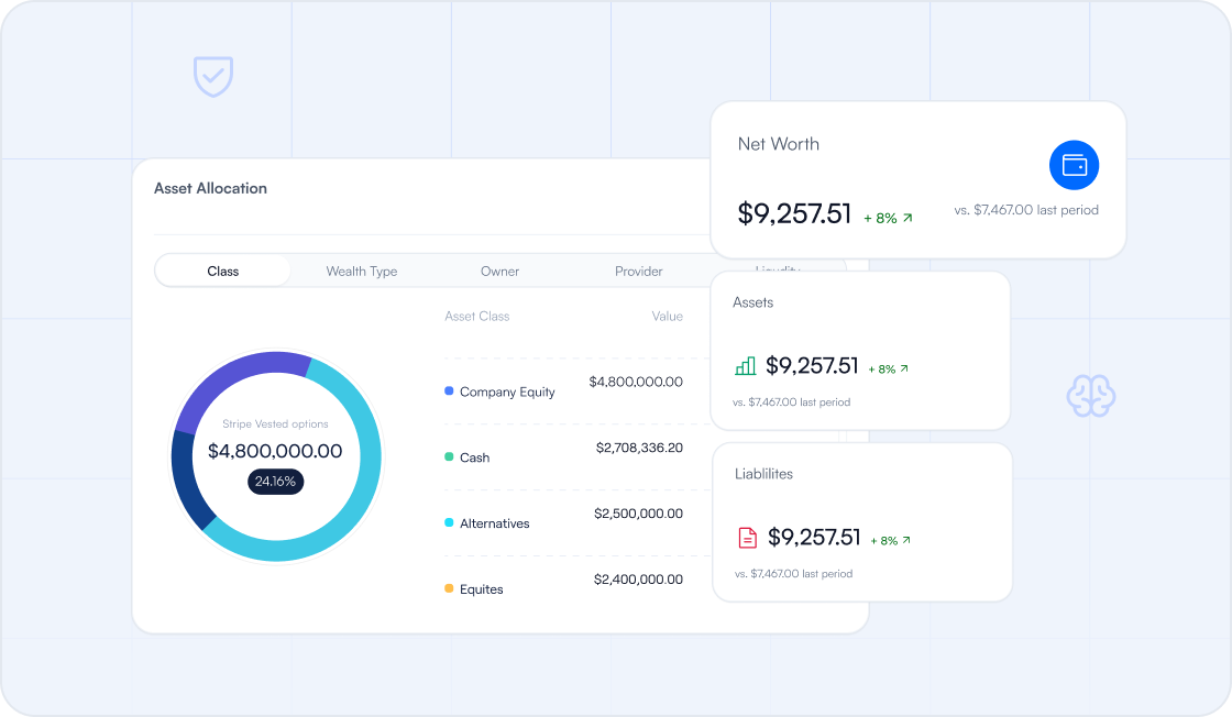 Asora provides a single, secure source of truth by unifying banks, funds, and private assets, along with performance monitoring, documents, and tasks, in one place.