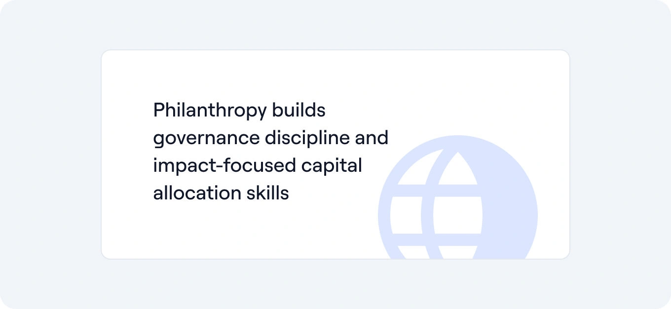 This builds confidence in managing money for impact—skills that transfer well to governance and disciplined decision-making, and can complement investment education.