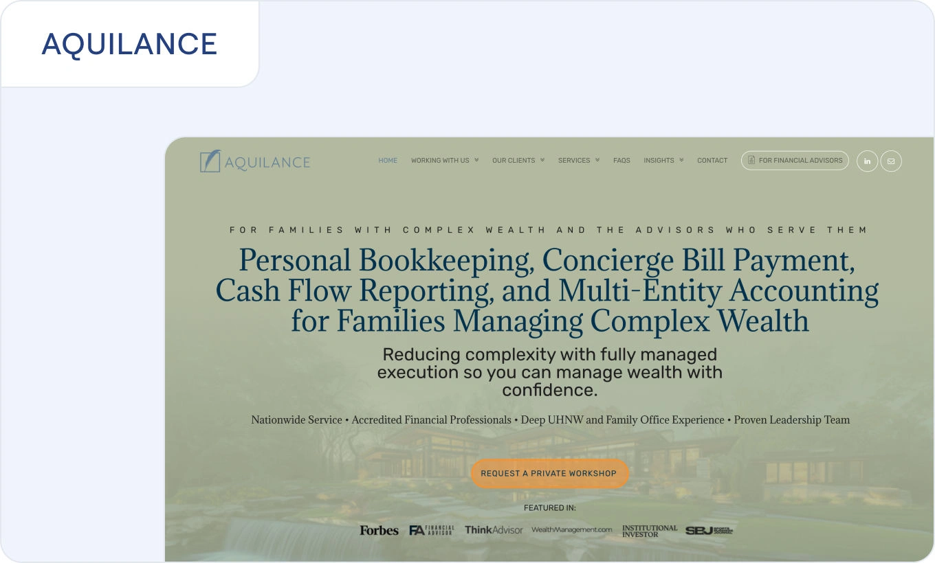 Aquilance focuses on streamlining complex operations for financial advisors. It's designed for family offices that want comprehensive wealth management services without requiring a certification to use it. The platform prioritizes user experience while still delivering the oversight capabilities that serious family offices need to enhance financial planning and decision-making.