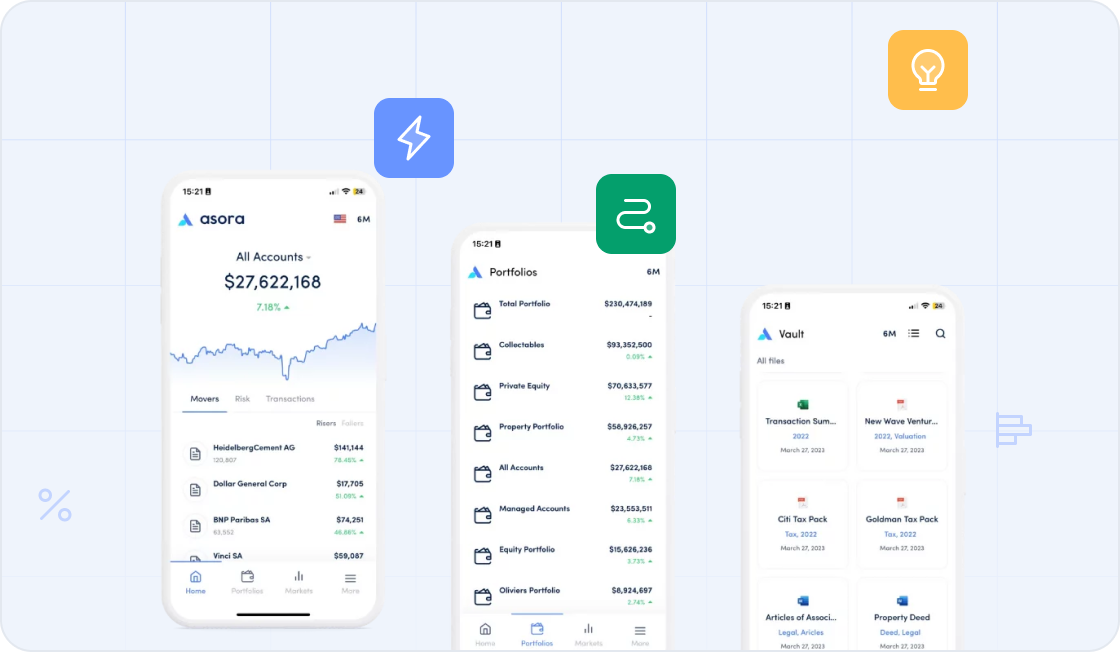 Asora Mobile combines ease of use with the depth required for multi-entity structures and alternative assets, providing family offices with absolute control over their wealth and facilitating long-term growth.