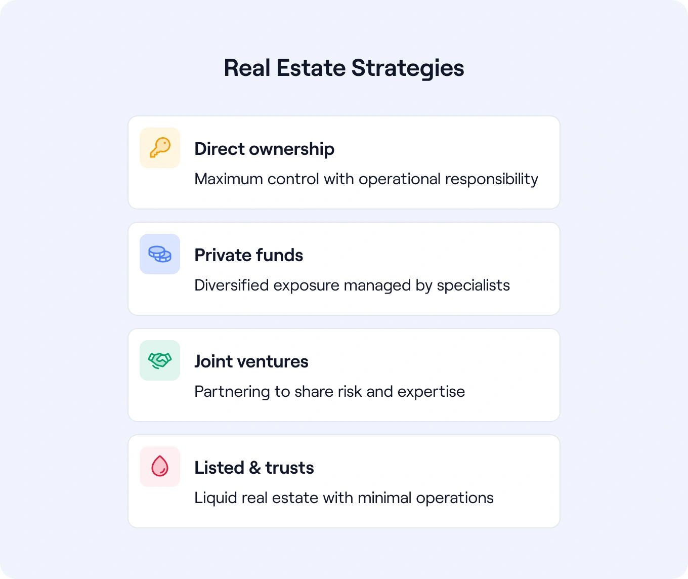 • How much capital can you commit? Direct ownership typically requires sufficient scale to justify oversight. Smaller allocations are often implemented via funds or listed vehicles.