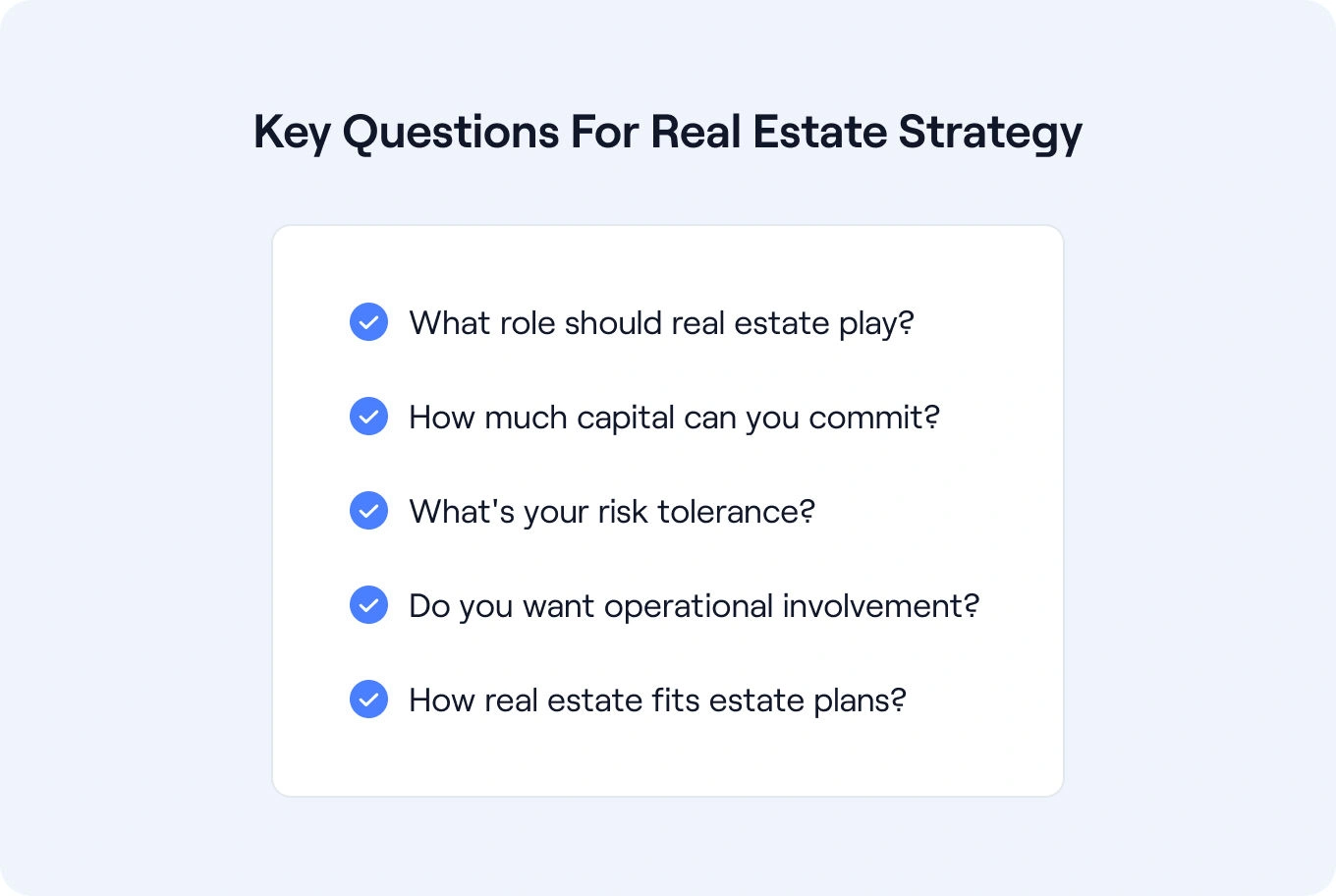 The answers guide whether families pursue direct ownership, private funds, or a combination approach.