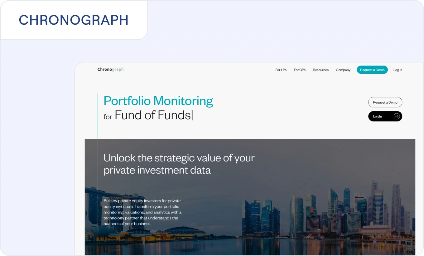 Chronograph provides a data and analytics platform for private capital investors, with a focus on consolidating fund data and supporting internal reporting processes.