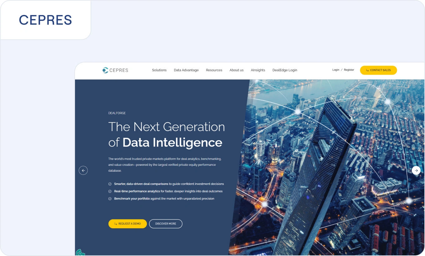 CEPRES offers a private markets investment platform combining portfolio monitoring with access to market data and benchmarking insights.