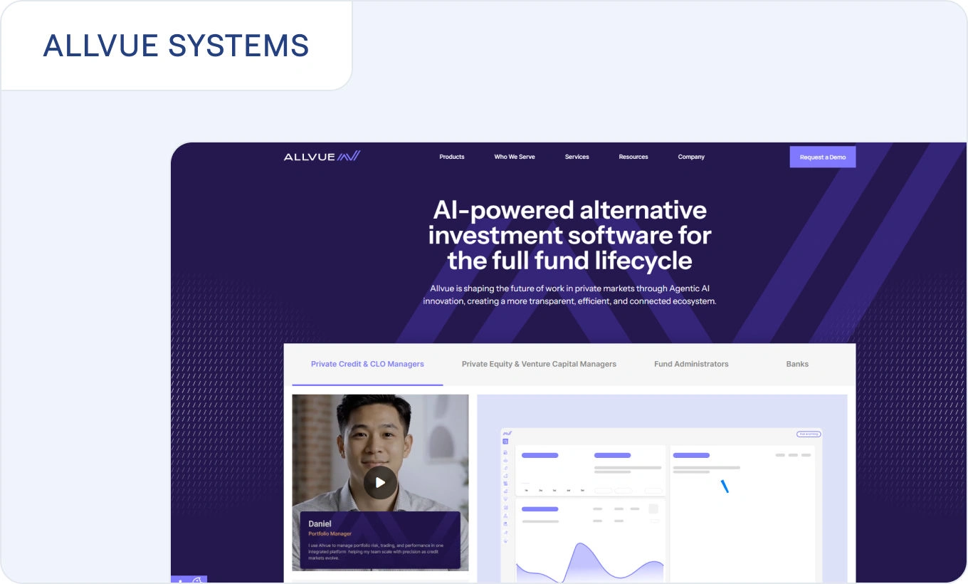 Allvue provides a platform that combines fund accounting, investment accounting, and portfolio monitoring with investor reporting capabilities.