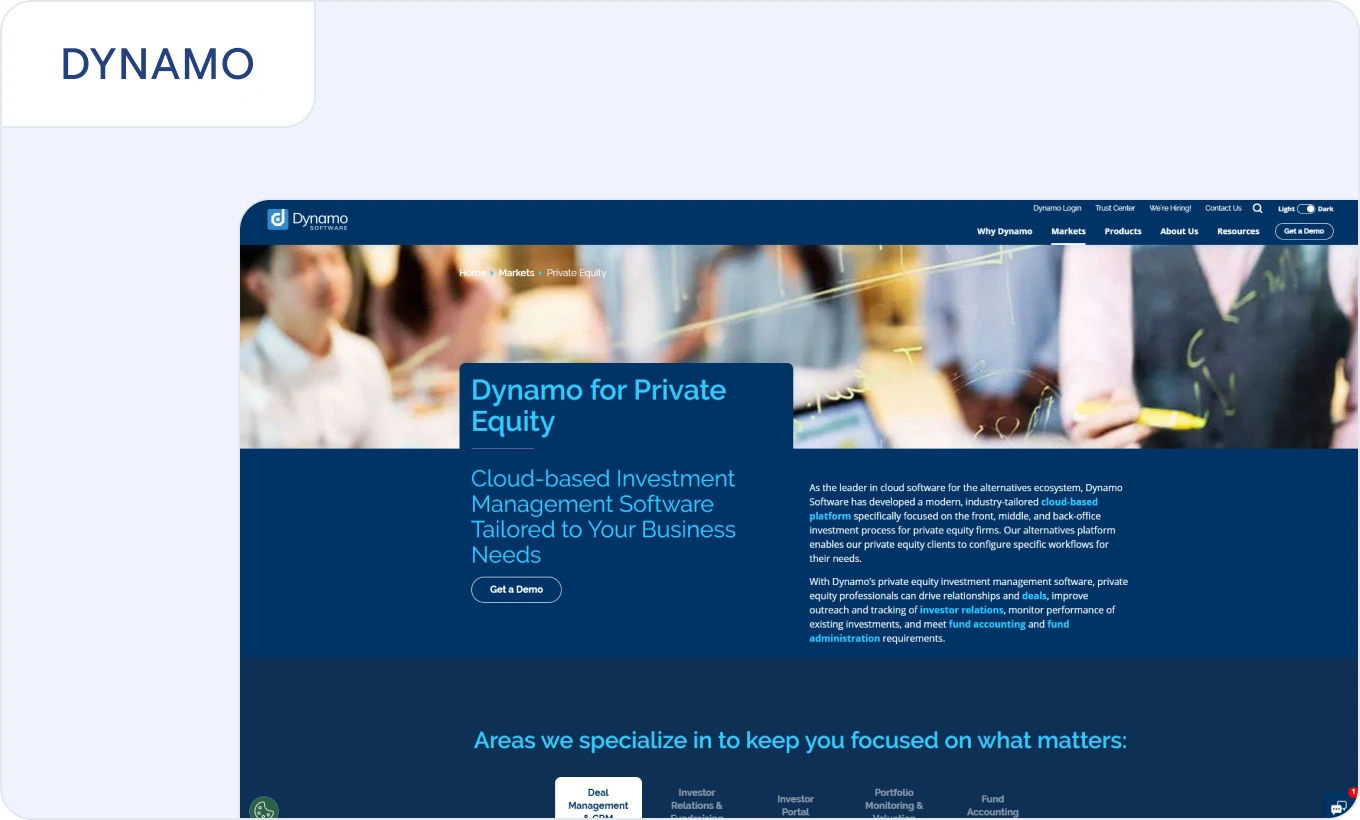 Dynamo supports firms seeking configurable portfolio monitoring and reporting workflows.