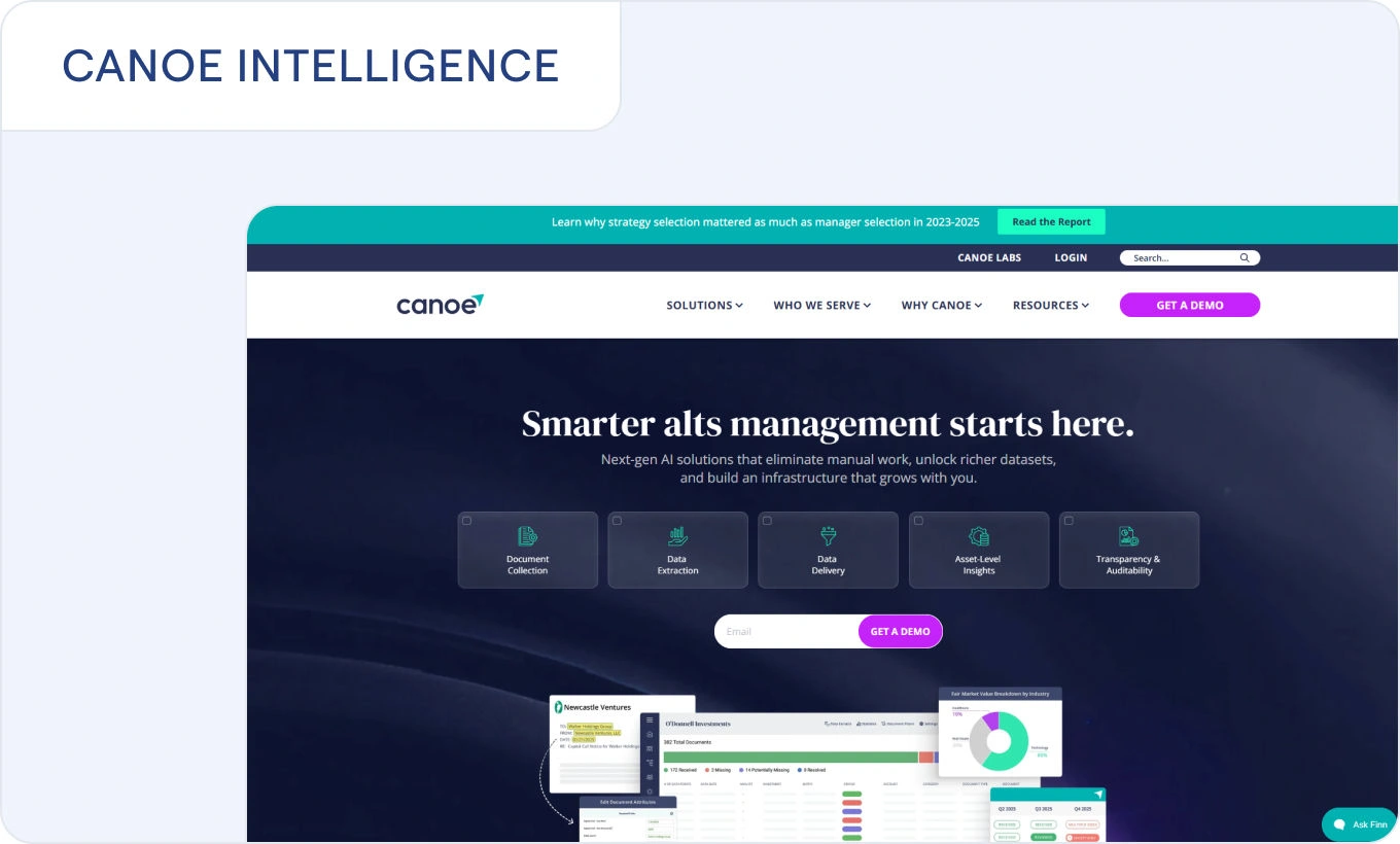 Canoe Intelligence provides document collection and data extraction tools for private markets, helping standardize information from GP communications.