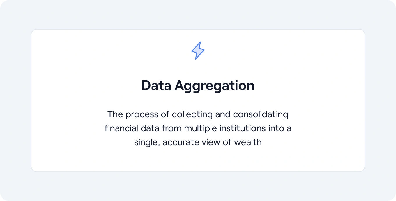 - Implement automated data aggregation from all custodians, banks, and investment platforms.