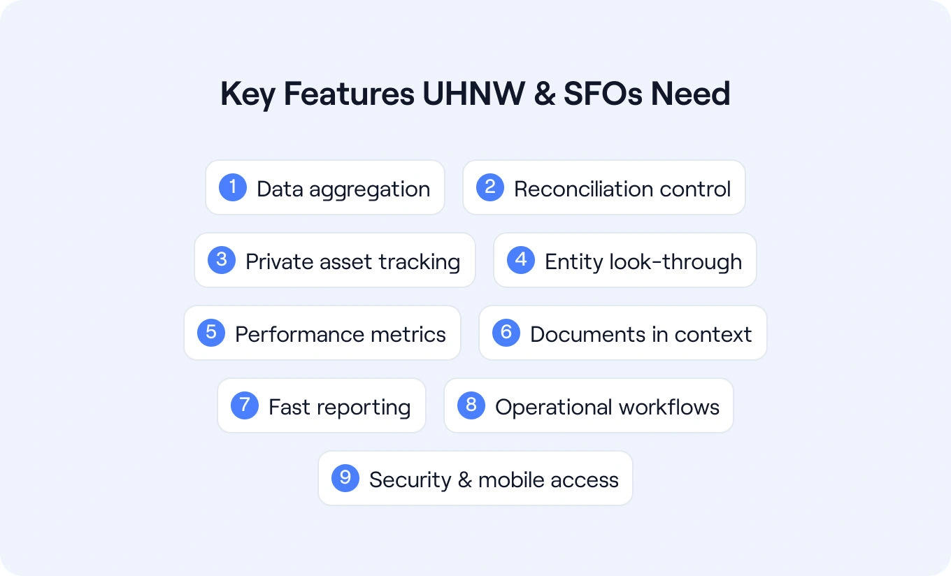 Not every platform handles complex wealth for family offices the same way. Here are the key factors that matter most when managing multi-entity portfolios with private assets.
