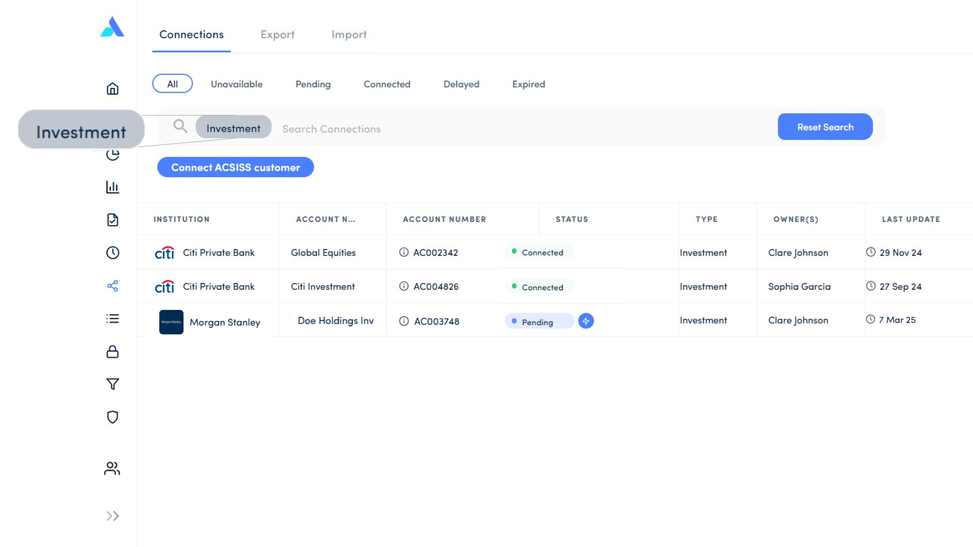 Bringing together all your financial data from banks, custodians and other sources into one platform for a complete view of wealth.