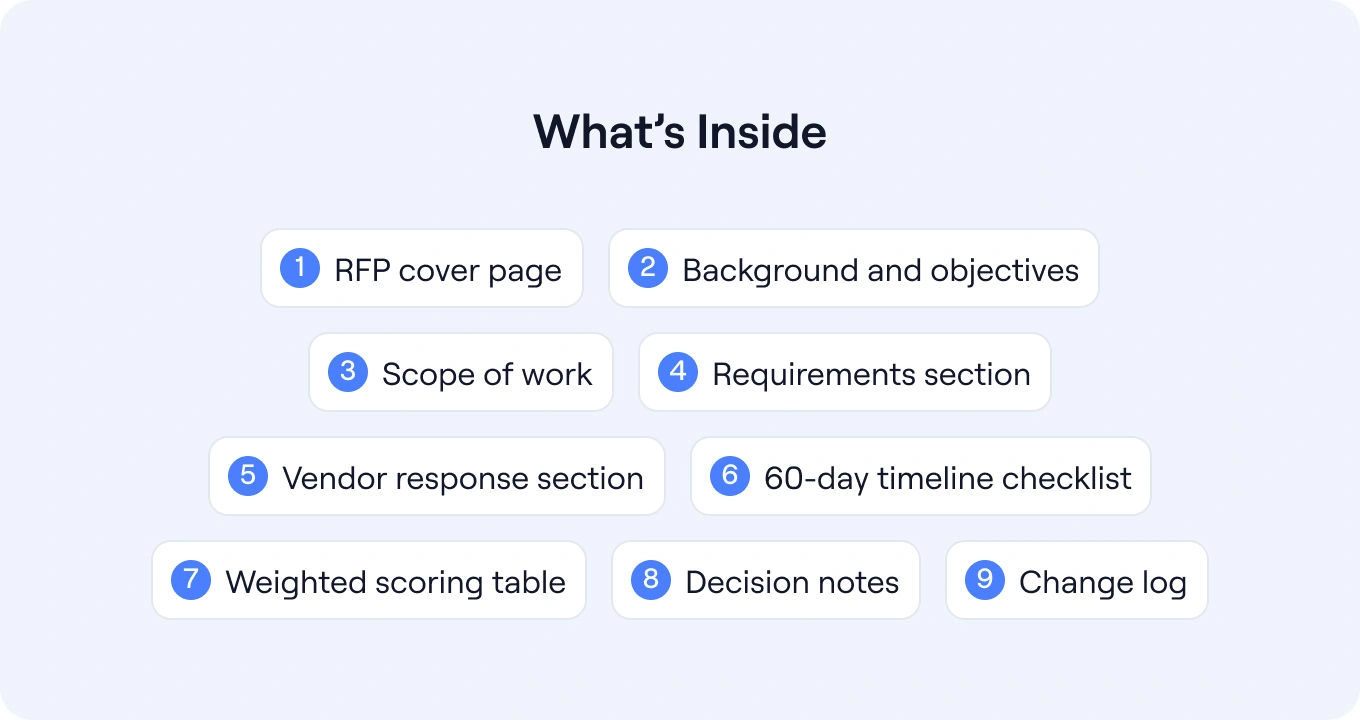 A good RFP helps teams agree on what matters before vendor conversations start to blur together. It makes it easier to compare modern platforms against legacy systems, identify trade-offs clearly, and keep the process anchored to actual priorities rather than whichever demo feels most polished.
