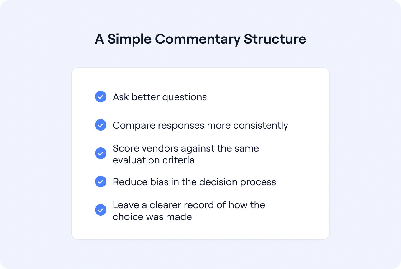 The result is not a perfect answer on its own. But it creates a much clearer starting point for internal discussion and final recommendation. It also helps teams determine whether the most important differentiator is functionality, implementation quality, support model, or total commercial fit.
